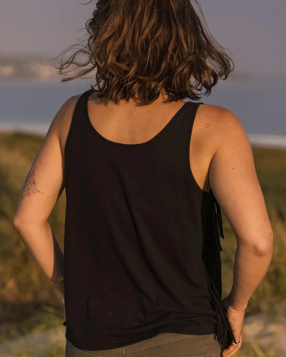 Soyez le premier à laisser votre avis sur “Gilet à Franges en Coton Recyclé Poppy – Noir”