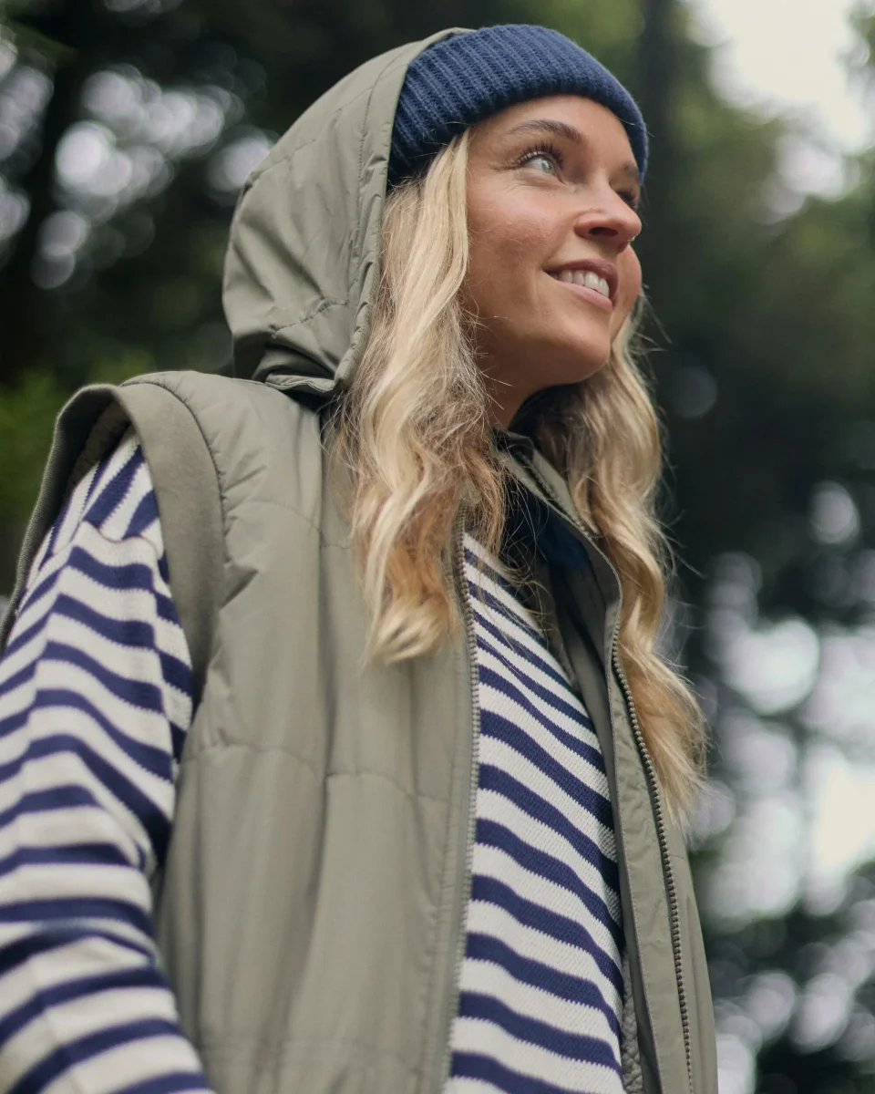 Inspirée par les road trips sous les forêts couvertes de canopée, la Flora Sherpa Lined Gilet t’enveloppe dans une douce sherpa du capuchon jusqu’en bas, avec des poches pour réchauffer tes mains et encore plus de confort. Sa coupe longue et oversize, avec des détails ajustables, en fait la pièce parfaite à superposer pour les journées fraîches en plein air.