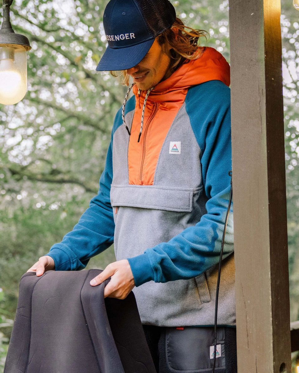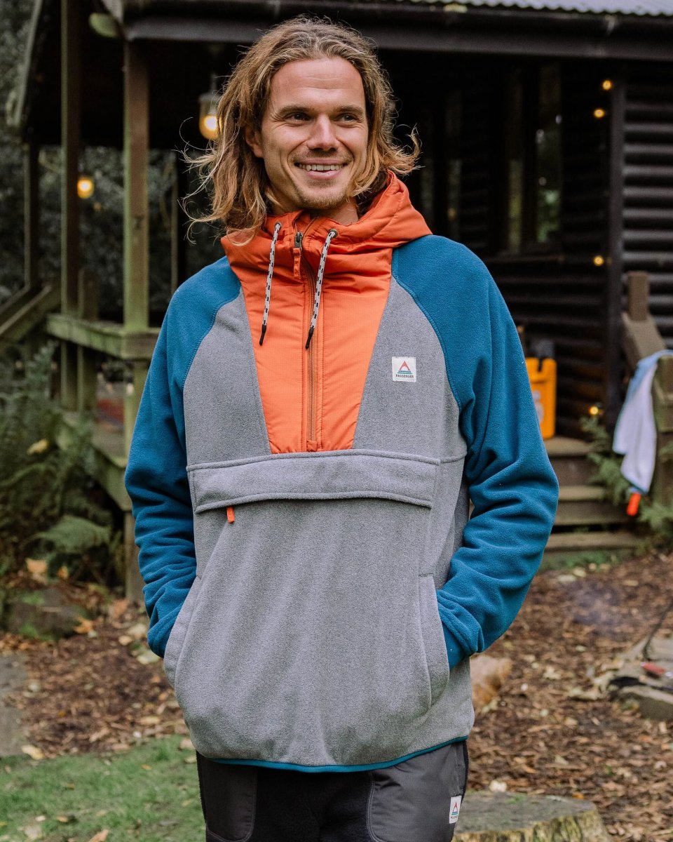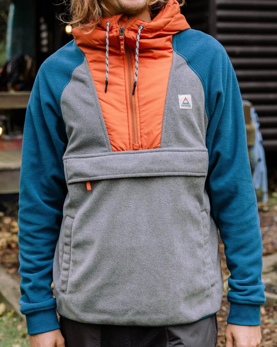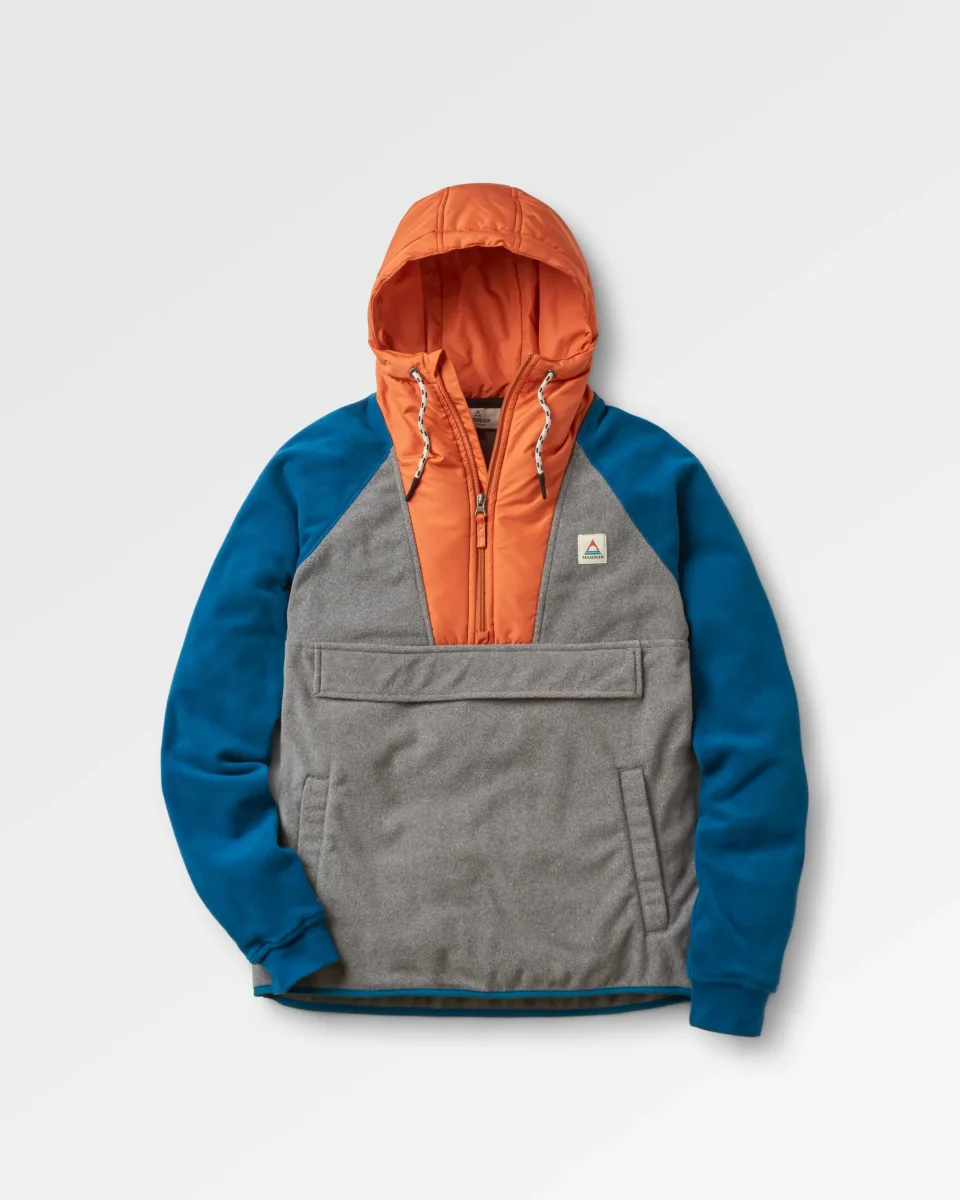 Polaire à Capuche et Demi-Zip Woodland – Gris Chiné / Bleu Tidal