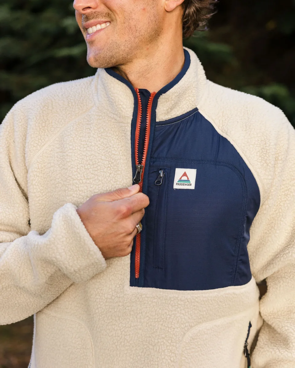 Polaire en Sherpa Recyclée à Fermeture Éclair 1/2 Offgrid 2.0 – Avoine/Bleu Marine