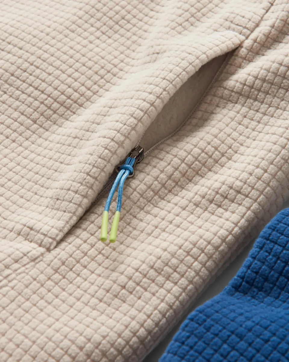 L’Overlook utilise notre tissu Grid Fleece avec des micro poches d’air entre le tissu et le corps. Cela signifie plus de chaleur, une grande respirabilité et une évacuation rapide de l’humidité. Parfait pour les randonnées.