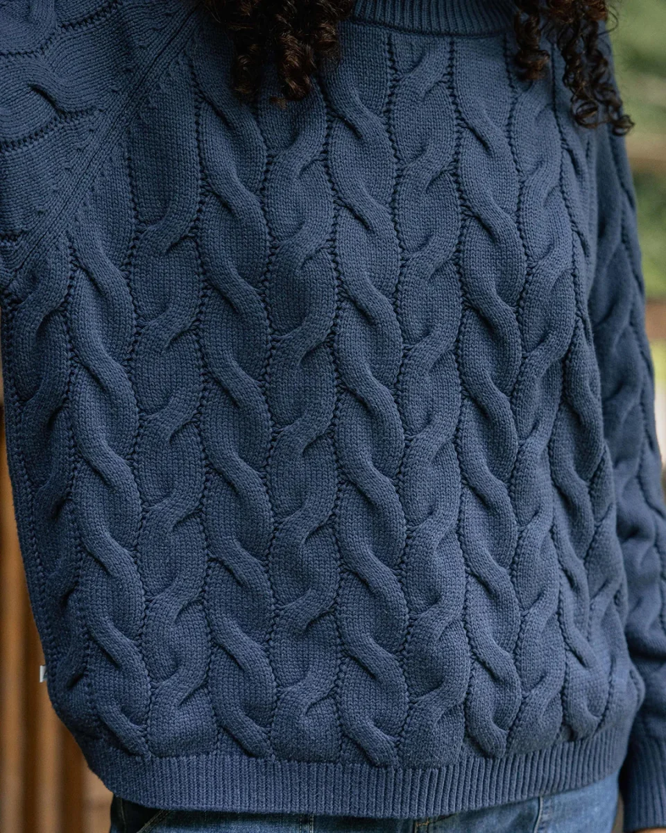Le Comfort est un pull classique en tricot de câble, fabriqué dans un mélange de coton biologique doux pour ces jours où vous poursuivez les couchers de soleil et vous réchauffez près du feu.