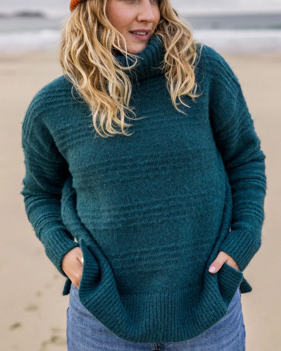 Pull douillet à col roulé en maille recyclée – Méditerranéen