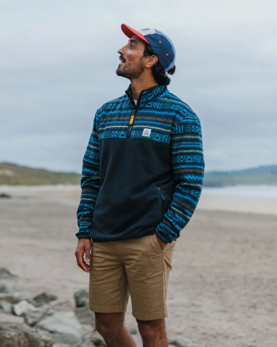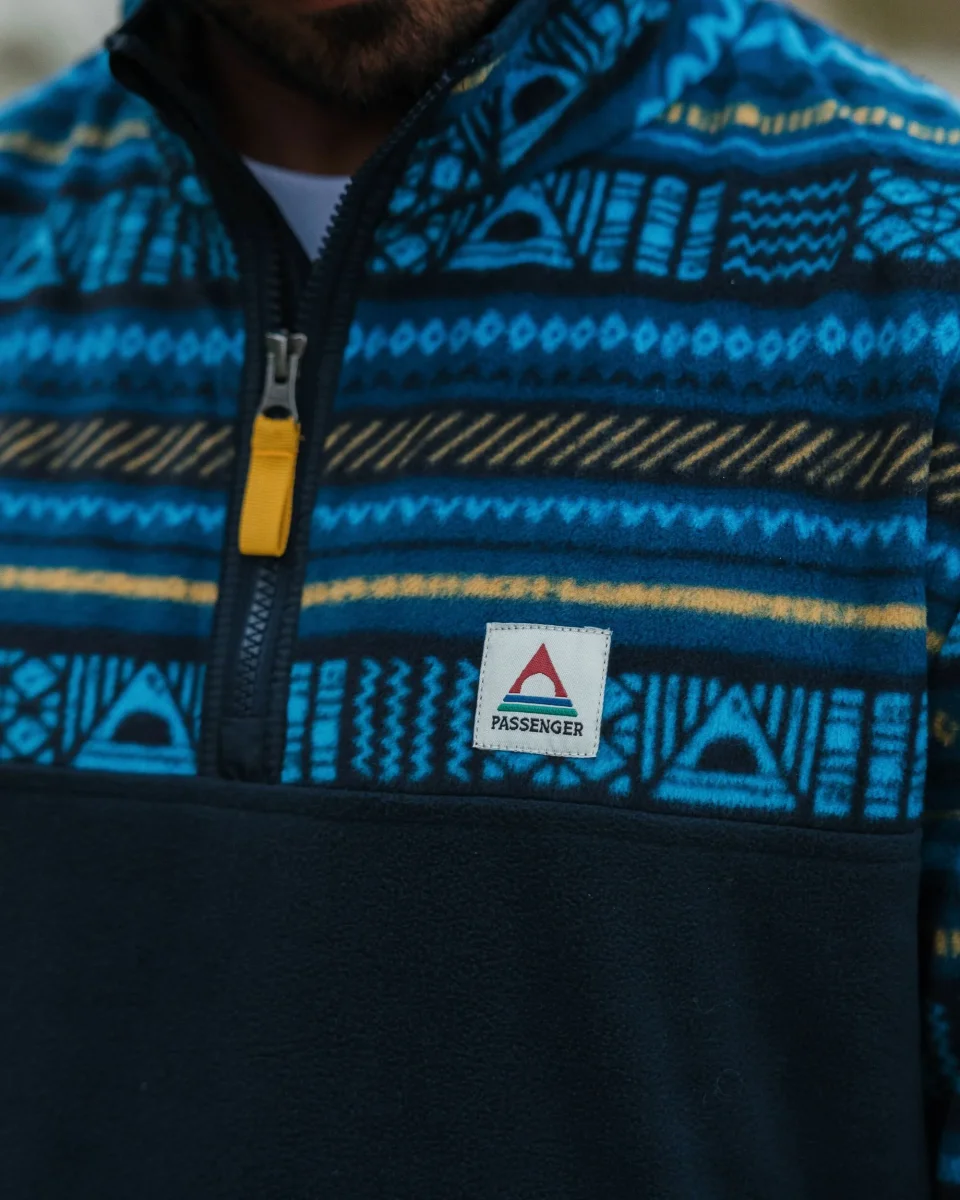 Pull Recyclé Polaire 1/4 Zip Set Off – Patchwork Rayé Tidal Blue/ Deep Navy
