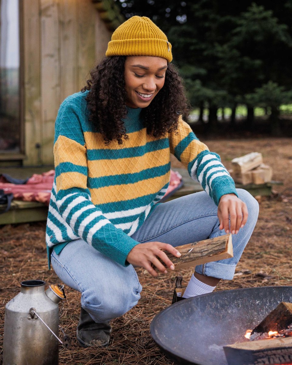 Évadez-vous dans une nature sauvage couverte de canopée avec le tricot Ramble. Confectionné dans un mélange de fils recyclés doux avec un design à rayures rétro, c’est une couche facile à enfiler conçue pour une vie d’escapism significatif.