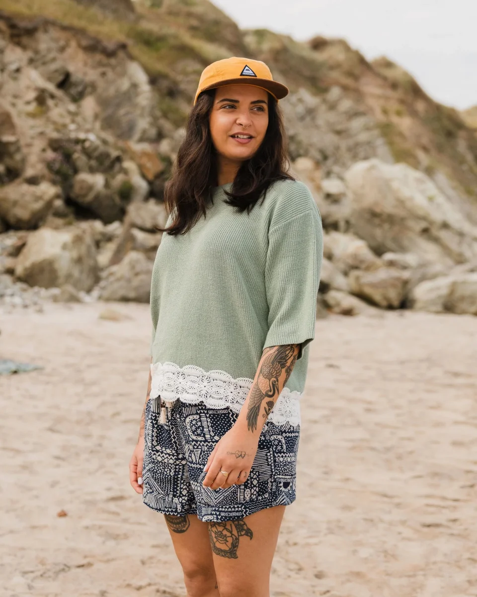 Le Vintage Organic Knitted Jumper est un pull en maille côtelée léger avec un col côtelé, une bordure en crochet à l’ourlet, coupé dans une coupe légèrement plus courte et plus carrée. Parfait pour ces vibes fortes d’escapism.