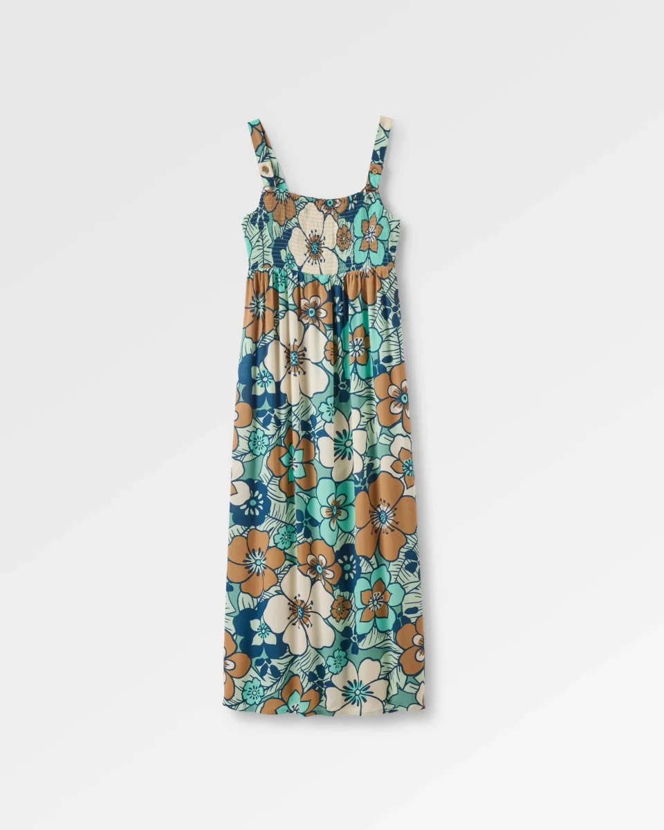 Découvrez la robe maxi tissée Soleis, conçue pour l’évasion. Cette robe en viscose LENZING™ ECOVERO™ présente un imprimé signé Passenger, des bretelles réglables avec boutons, et des poches latérales pratiques pour un style et un confort sans effort.