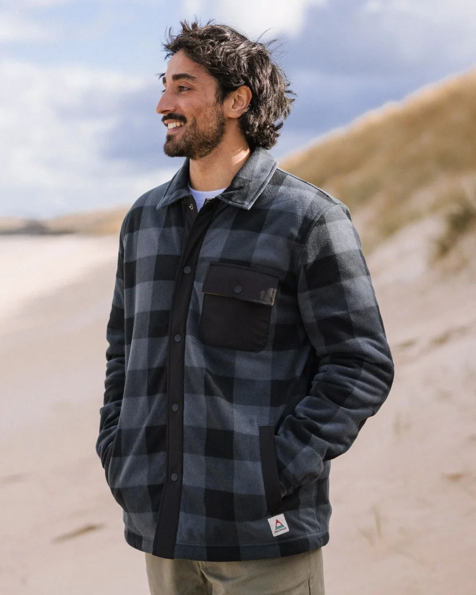 Inspirée par les road trips dans les forêts couvertes de canopée, la chemise Firelight est fabriquée en polaire recyclée avec un corps doublé en Sherpa.