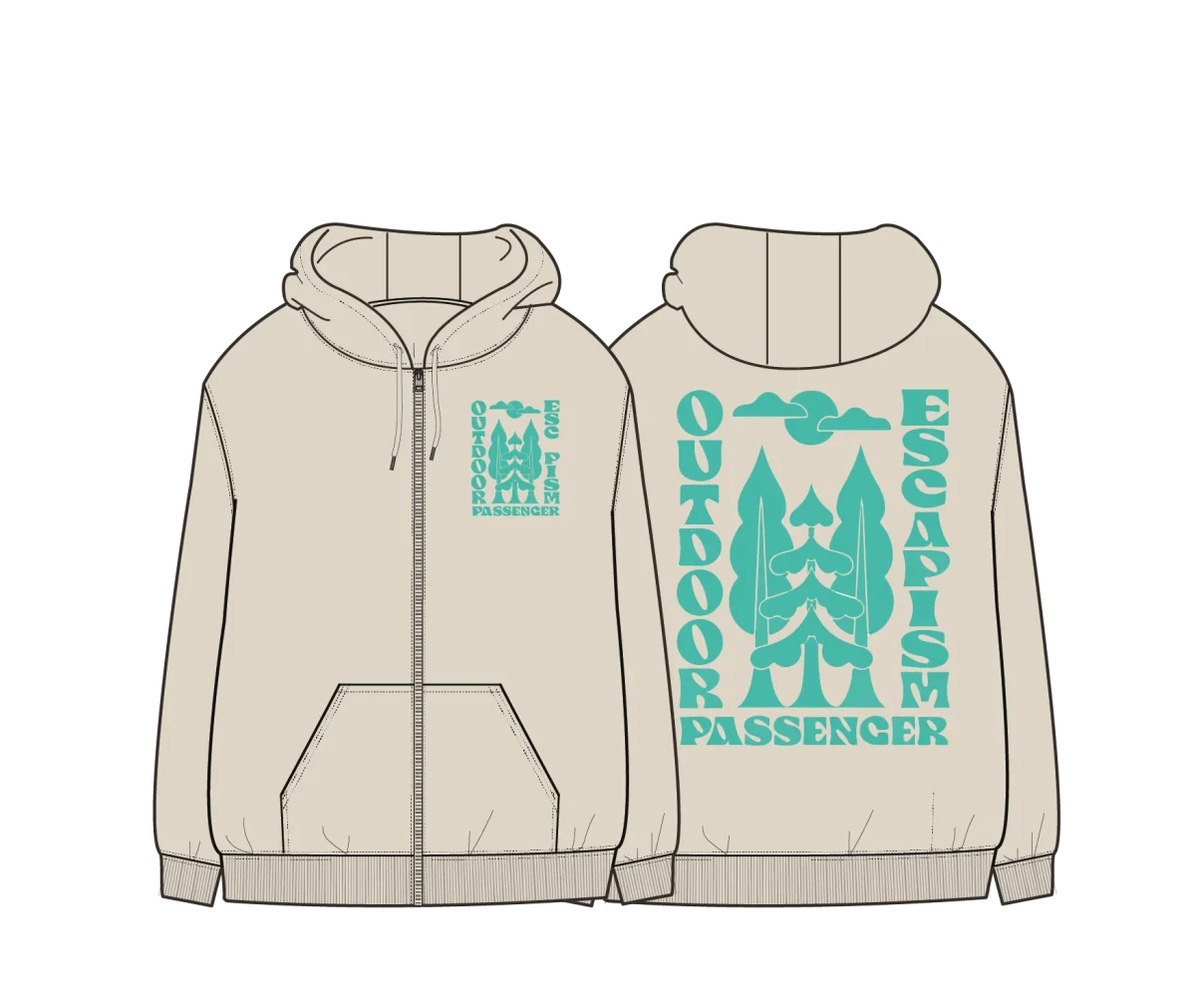 Sweat à capuche zippé intégral Tall Pines – Bouleau