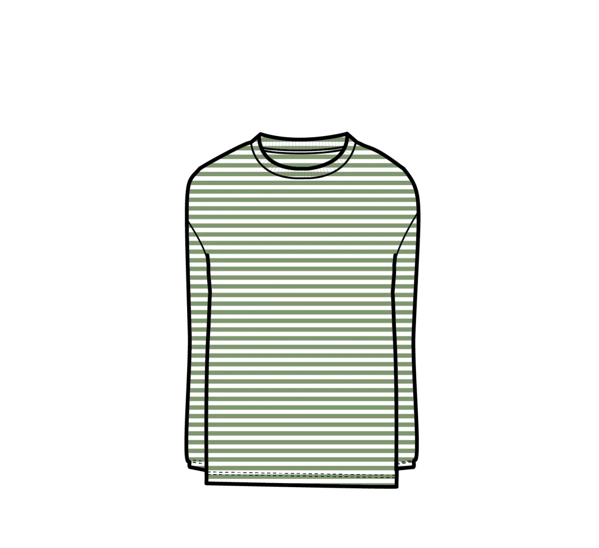 T-shirt à manches longues rayé Panorama – Vert Tige