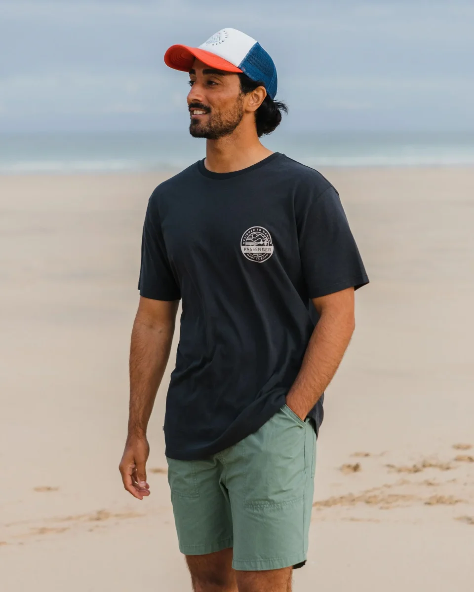 Notre T-shirt Odyssey est une coupe classique avec des imprimés inspirés de l’aventure à l’avant et à l’arrière. Une couche qui fait sensation en coupe classique, fabriquée avec notre mélange super confortable de 50% coton recyclé et 50% coton bio.